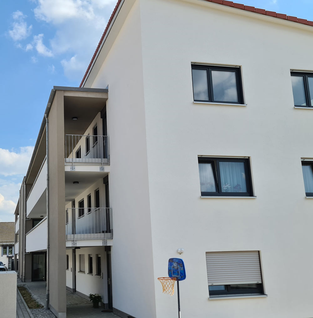 Die alten Bestandsgebäude aus den frühen 50er-Jahren wurden Anfang 2020 abgerissen, an ihrer Stelle entstanden vier moderne Mehrfamilienhäuser mit insgesamt 34 Mietwohnungen. Ab Mai 2022 konnten die Wohnungen der ersten beiden Gebäude an die neuen Mieter übergeben werden, ab August waren auch die restlichen Wohnungen bezugsfertig